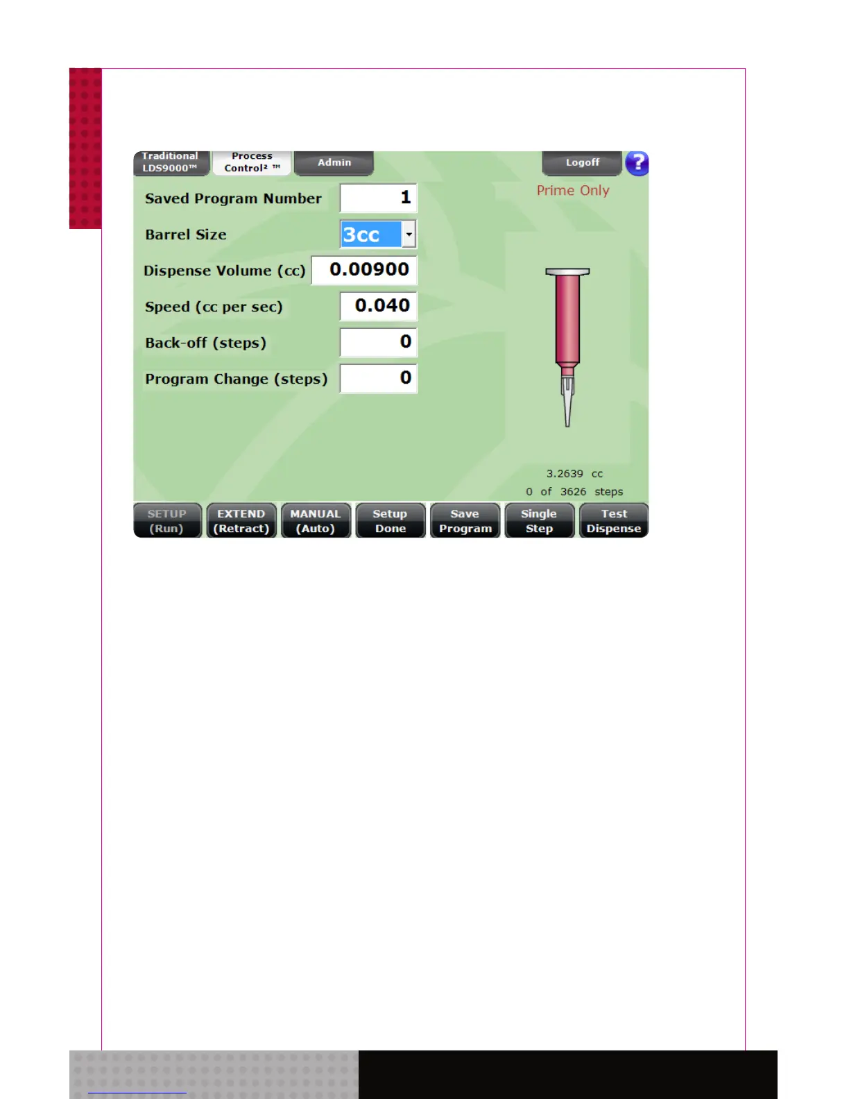 Traditional 9000 menu. “Dispense Only” function is