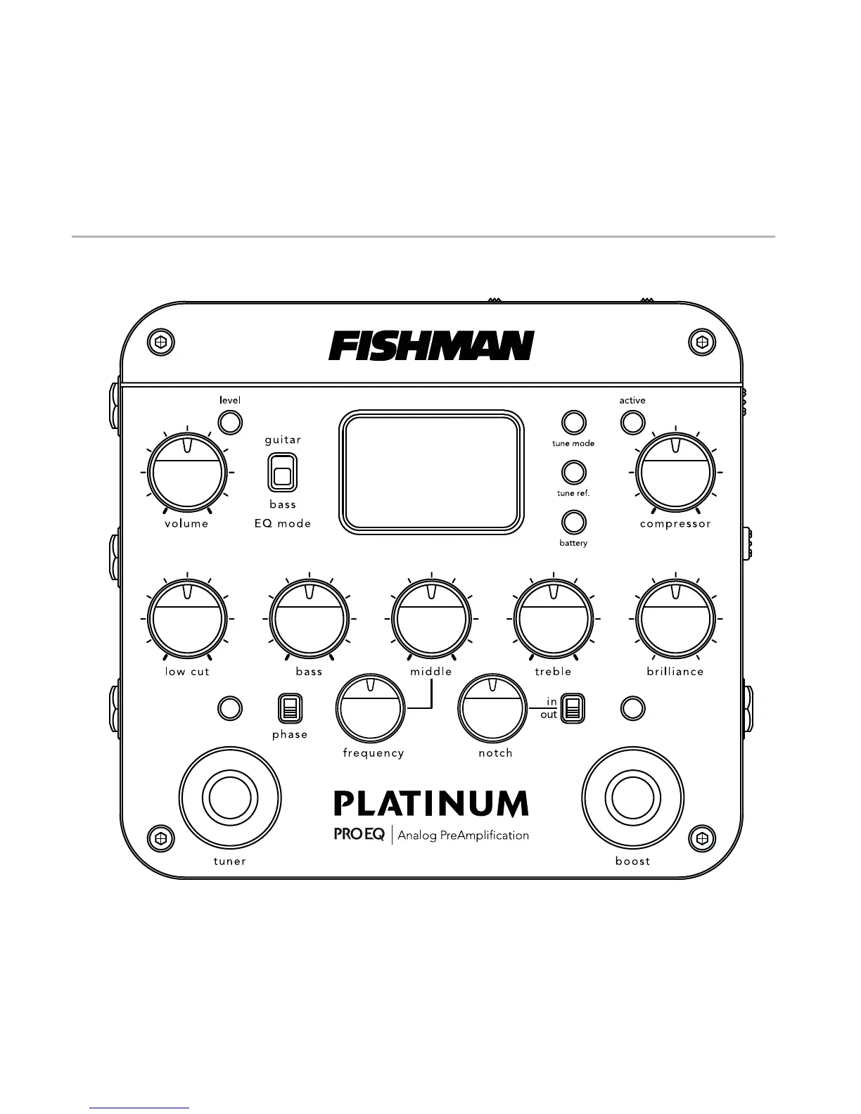 Fishman PLATINUM PRO EQ - Front Panel Controls; Front Panel Overview