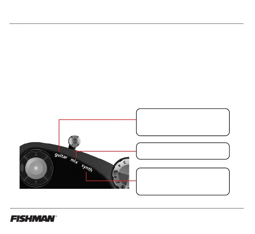 from the controller are handled. There are 3 positions on the switch; Guitar, Mix, and Synth. Each position