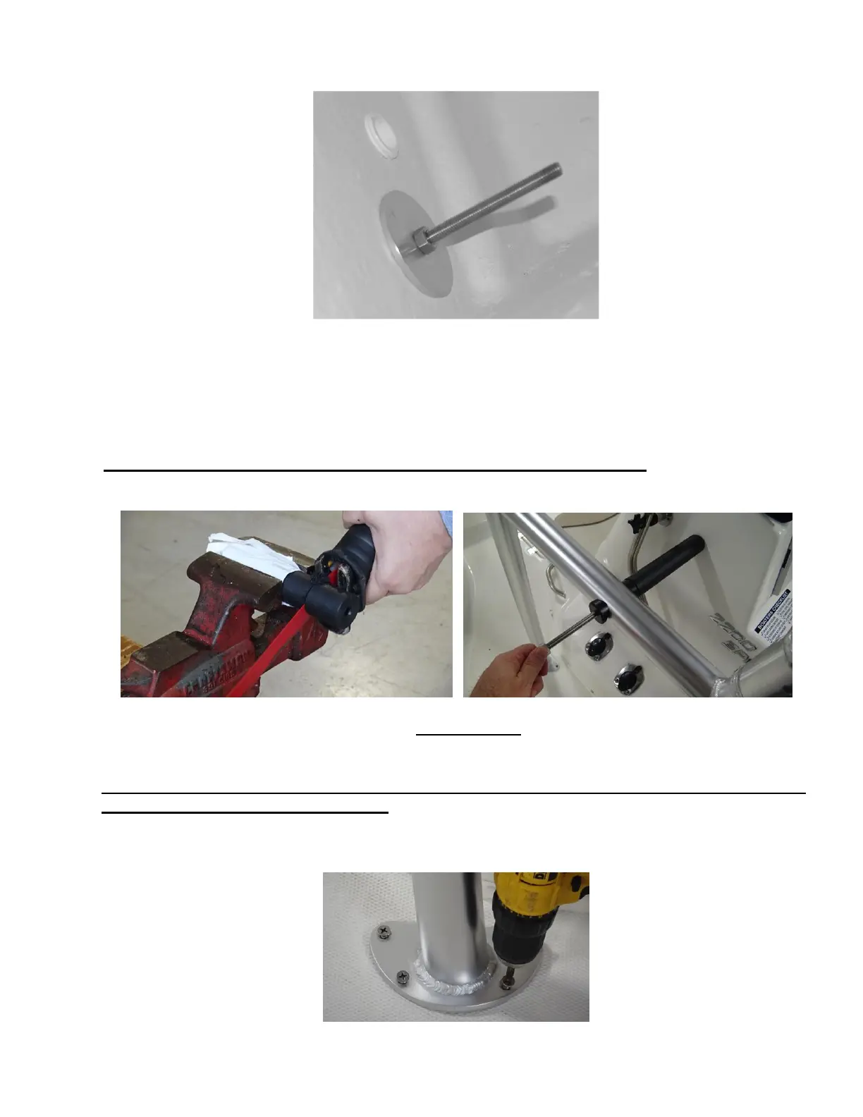 Use the 3/8” bit to drill through the T-Top leg and center console as shown. Use a