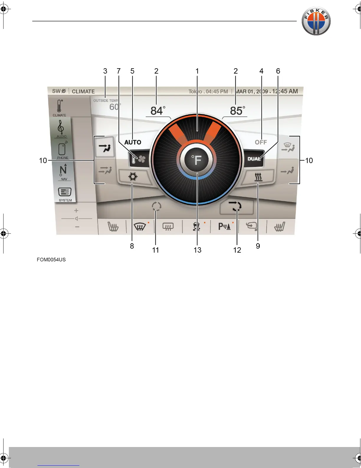 1. Temperature/blower speed adjustment