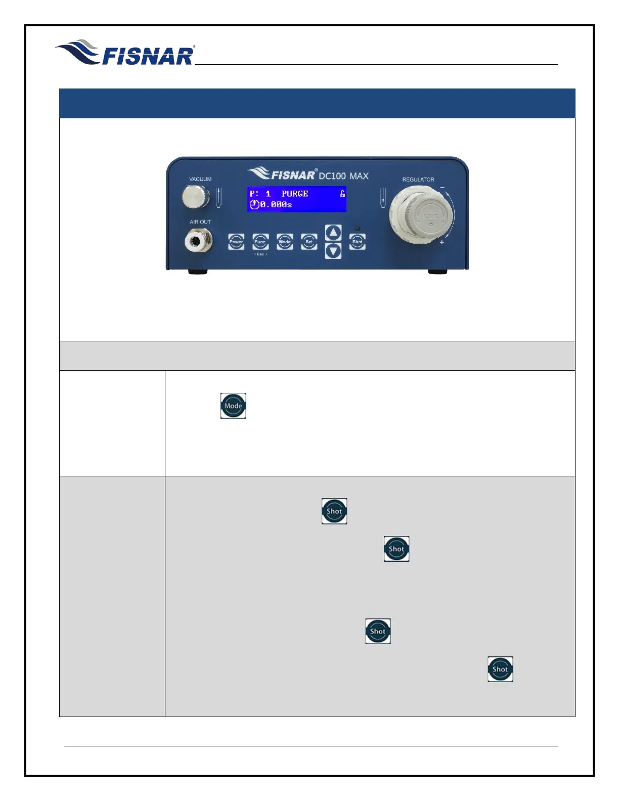 PURGE mode allows the operator to actuate the machine on demand whenever