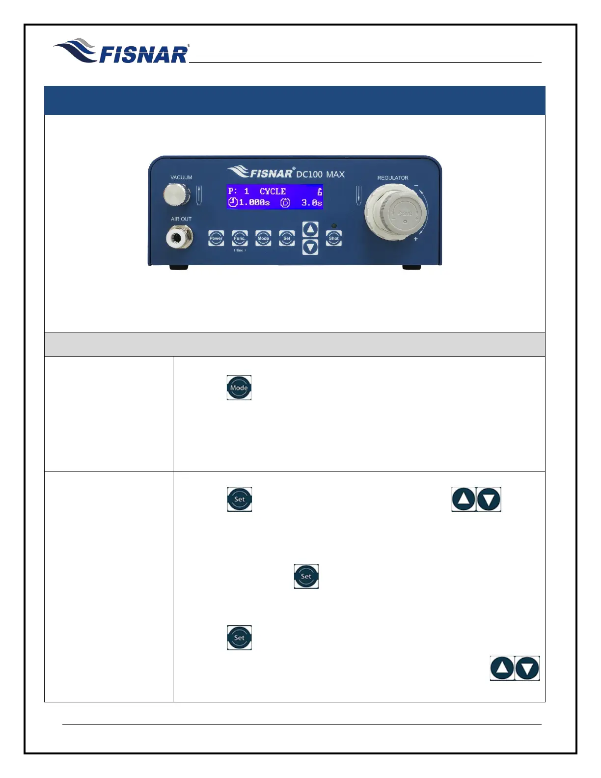 CYCLE mode allows the operator to create a repeating cycle of dispense