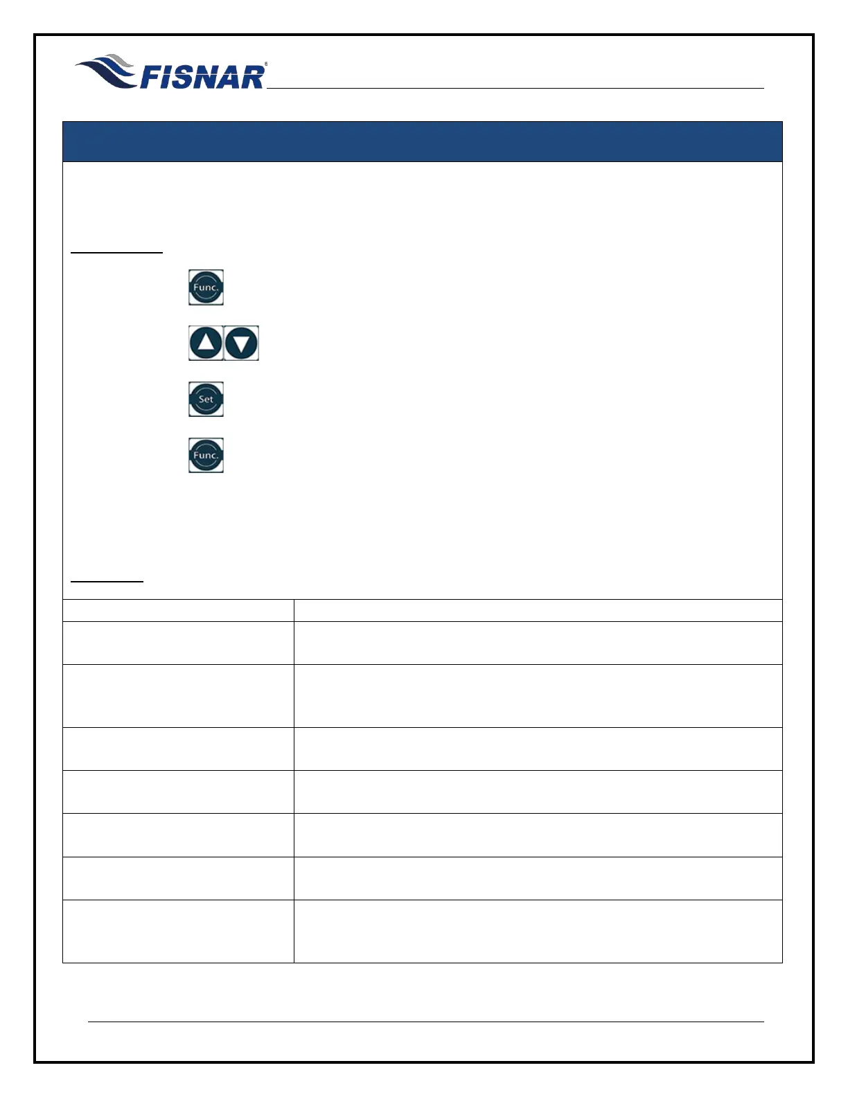 • Press the buttons to scroll through the available function settings.
