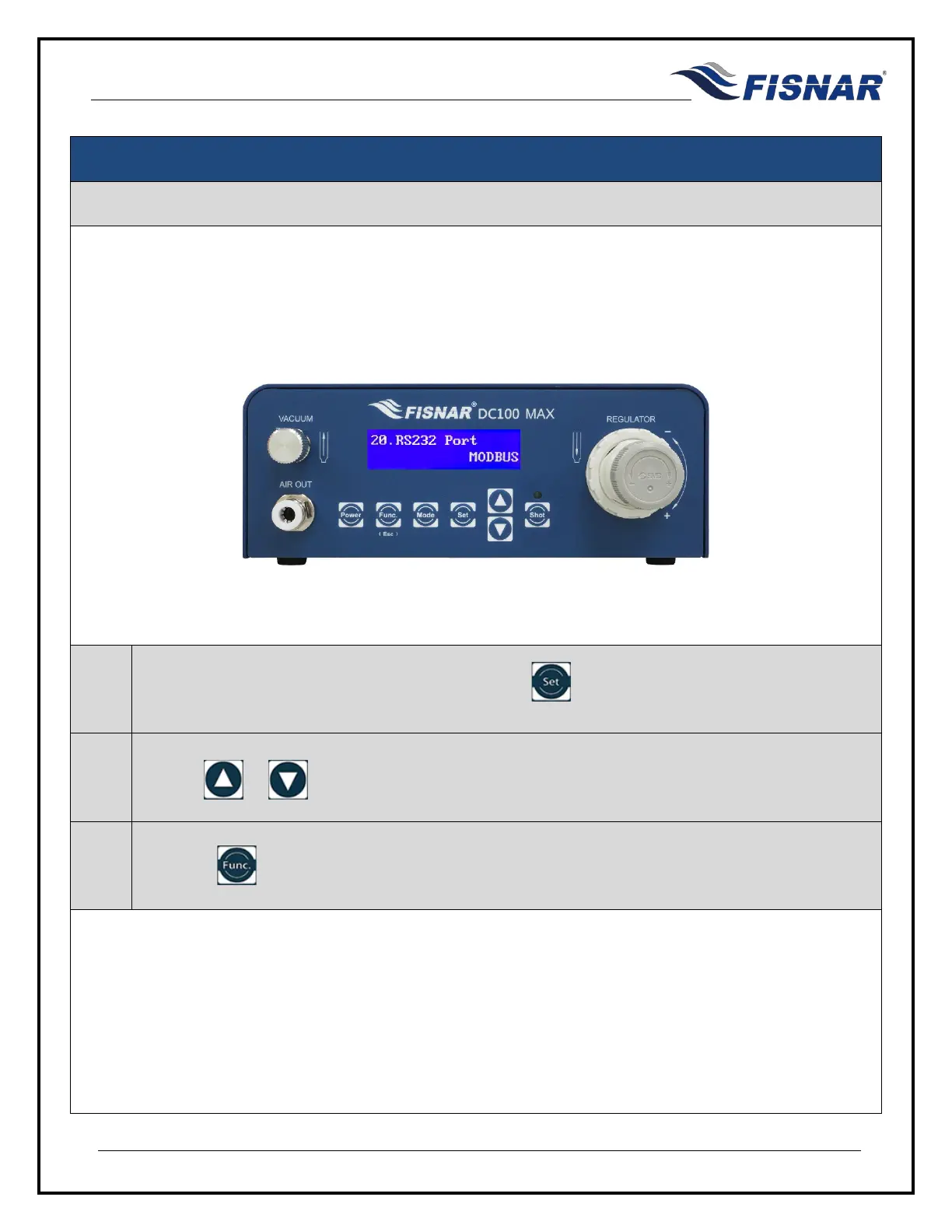 When the RS232 Port page is displayed, press the button to enter into the setting page for