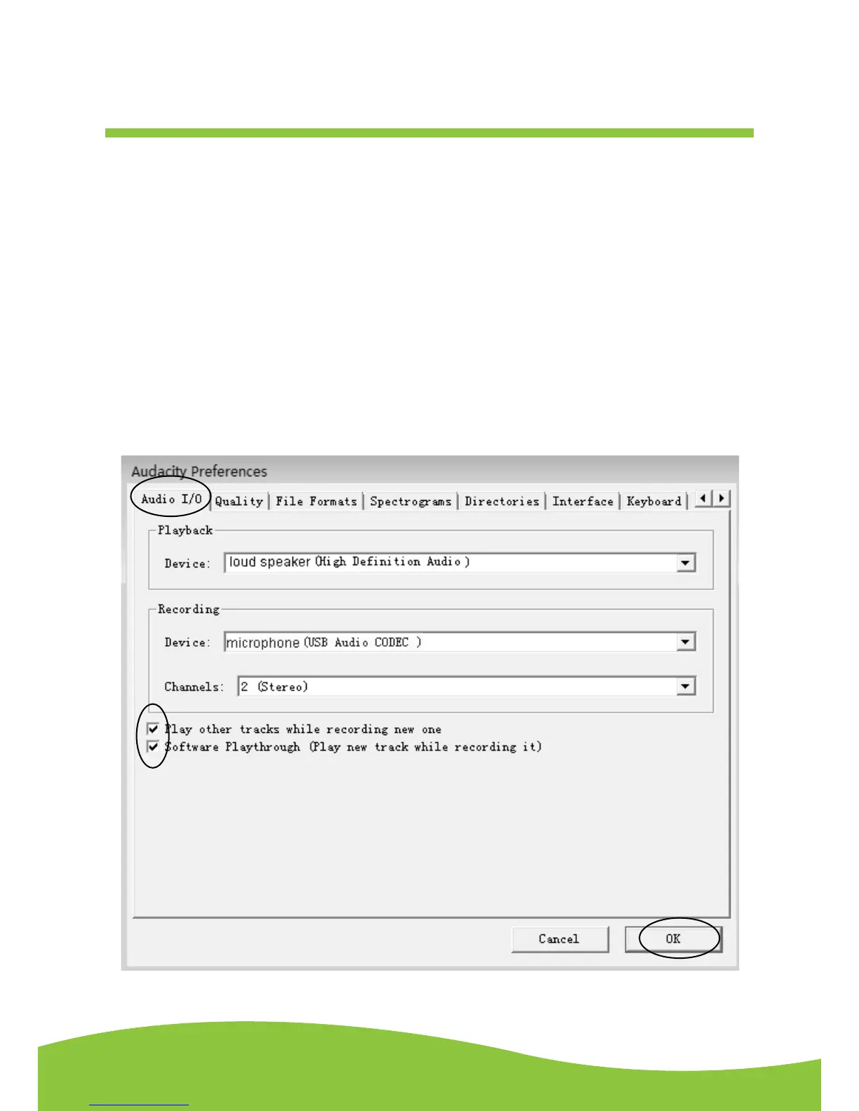 Click Edit and select “Preference”. Then click “Audio |/O” tab. Follow the setting as shown below