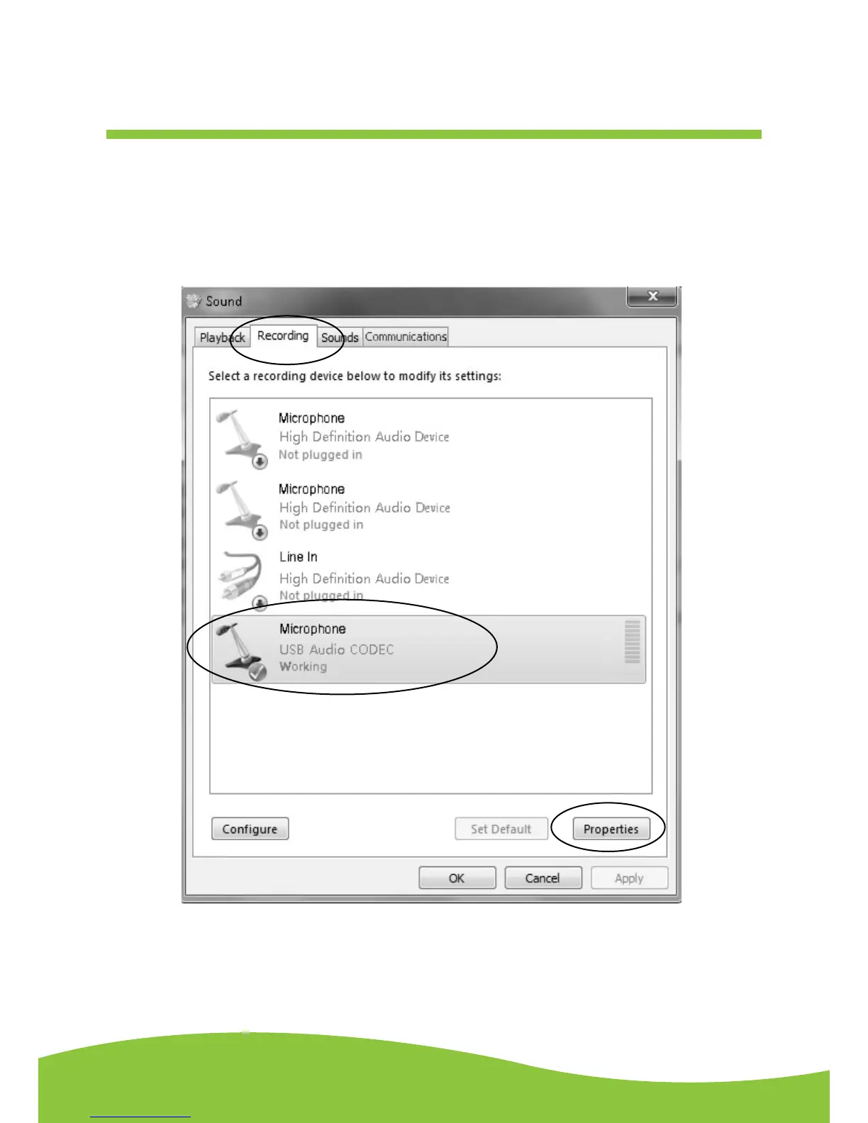 • Then, choose a recording device. Herein we recommend you to select Microphone of USB AUDIO