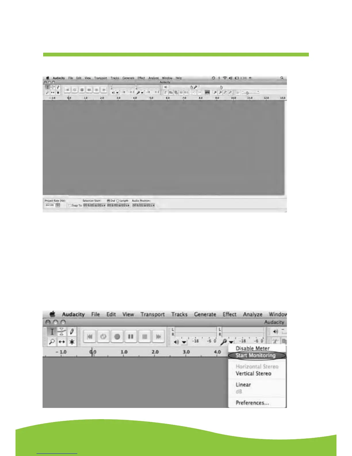 select Start Monitor. (If you don’t see the input and output level meters, open your Preferences again