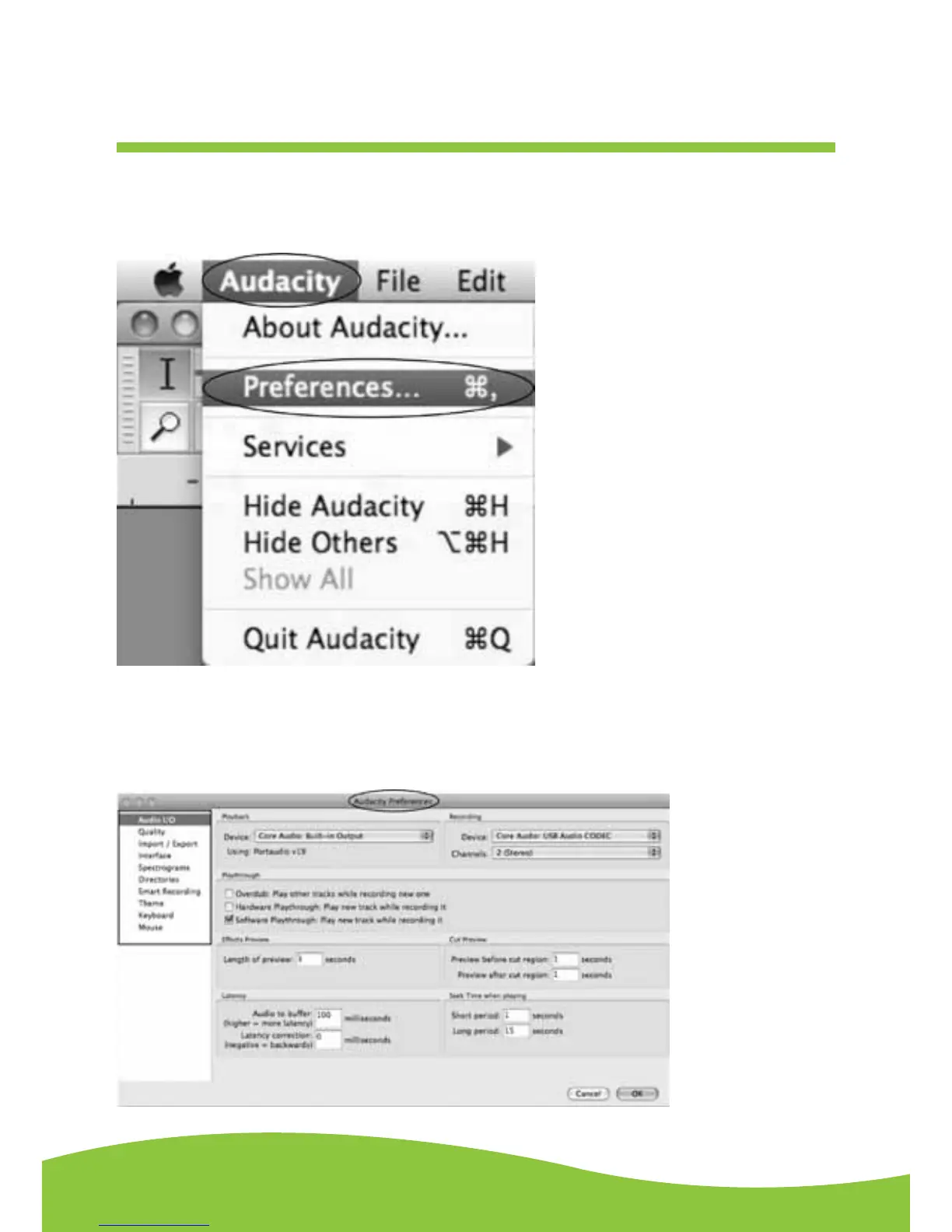 Click “Audacity” on the Audacity menu, select “Preferences”.