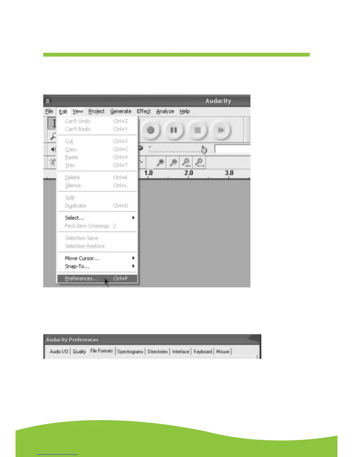 • The screen will open up Audacity Preferences. You can see the Audio I/O, Quality, File Formats,