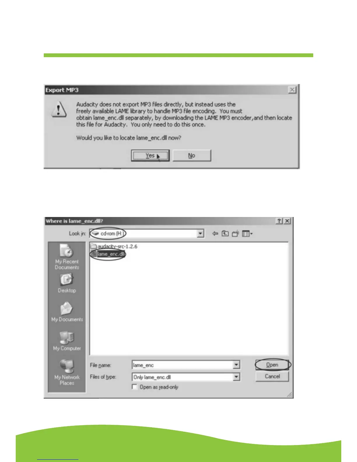 5. Another box appears to locate the “CD ROM”. You will nd the “lame_enc.dll” software. Click