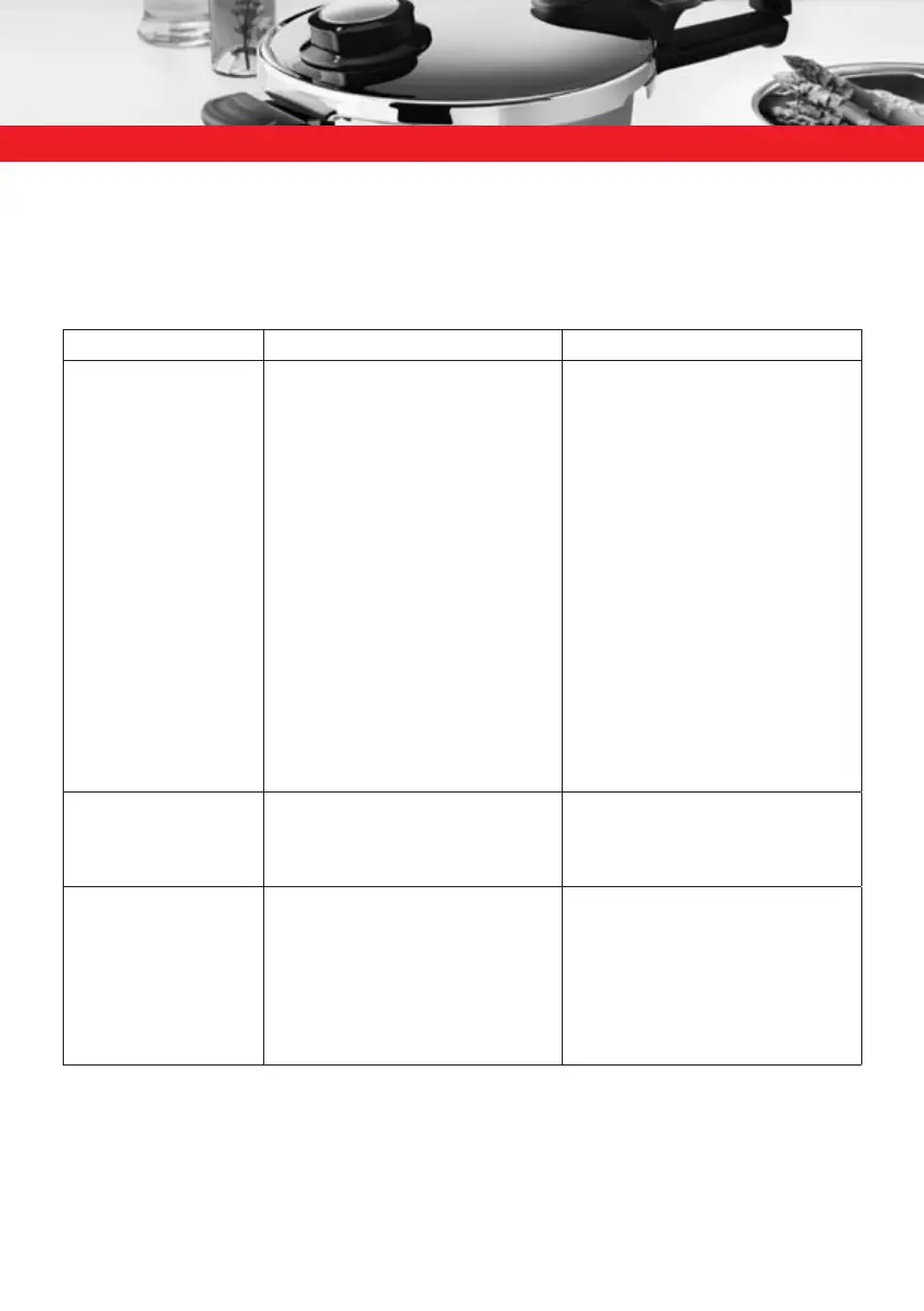 Important: Always turn off the energy source and let the pressure cooker cool off before you attempt to elimina-