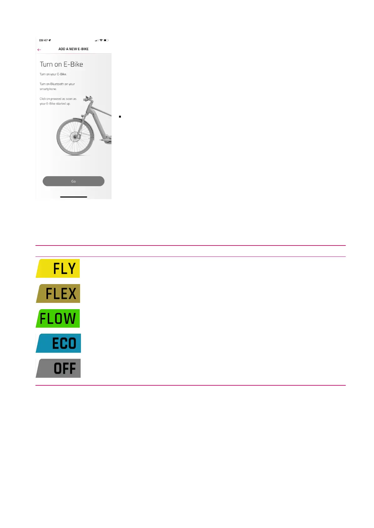 No motor assistance. The e-bike rides like a normal bicycle. All on-board computer functions are