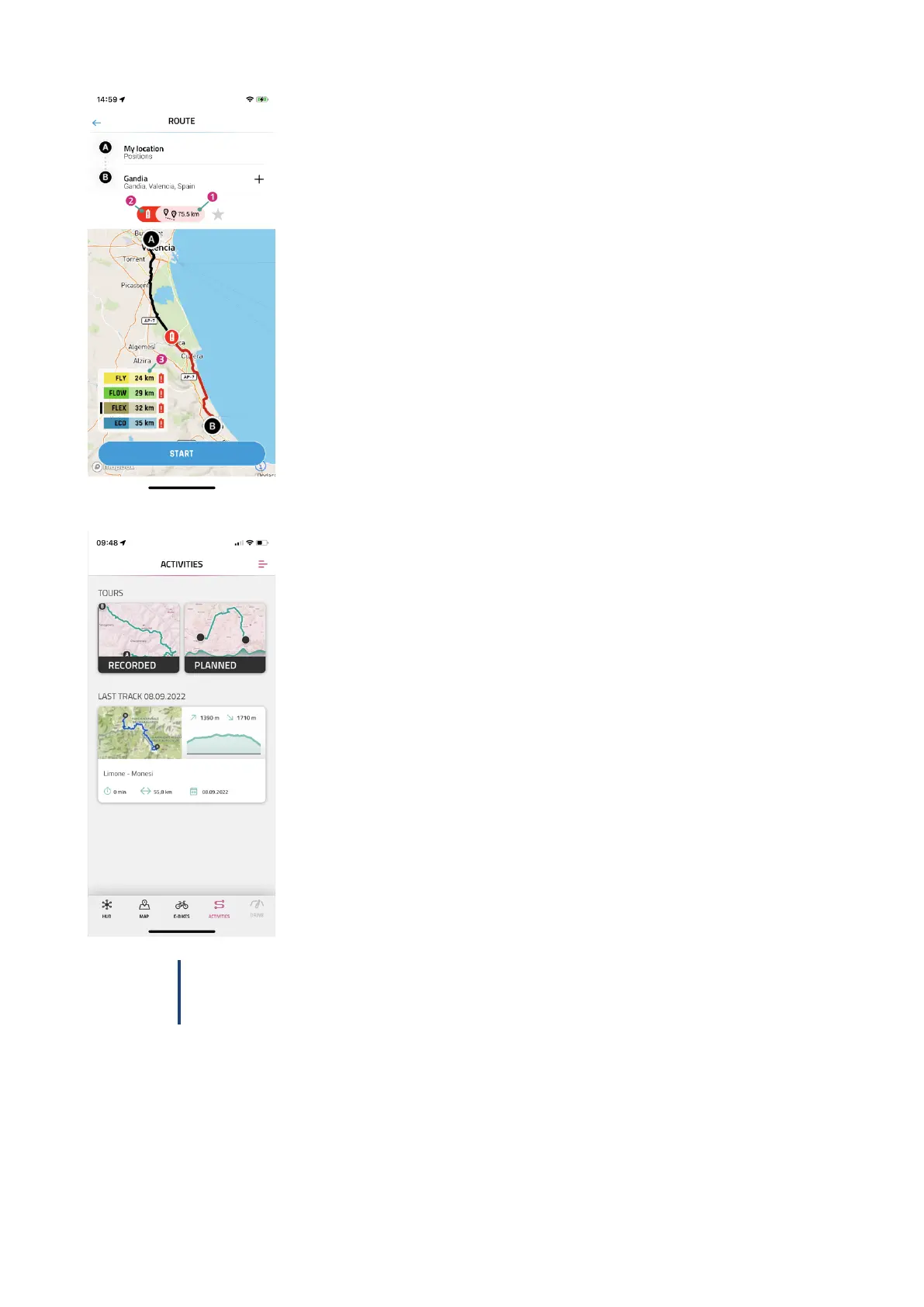 In the ACTIVITIES menu, you can choose between recorded and planned tours from