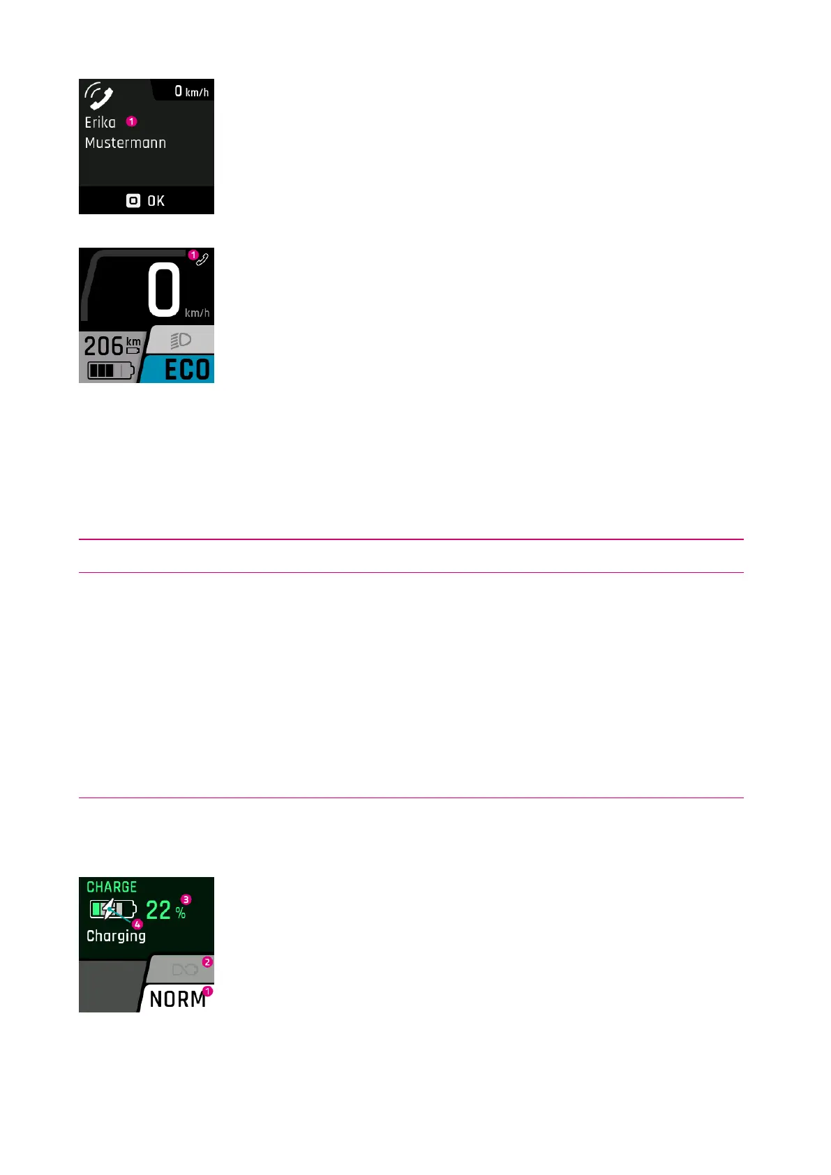 The charge indicator appears as soon as the charger is connected to the e-bike. Use the plus / minus button to