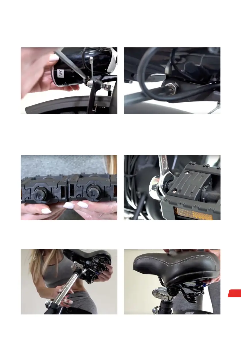 Placez les pédales en faisant attention à la lettre imprimée sur l’écrou (“R” = droite et “L” = gauche).