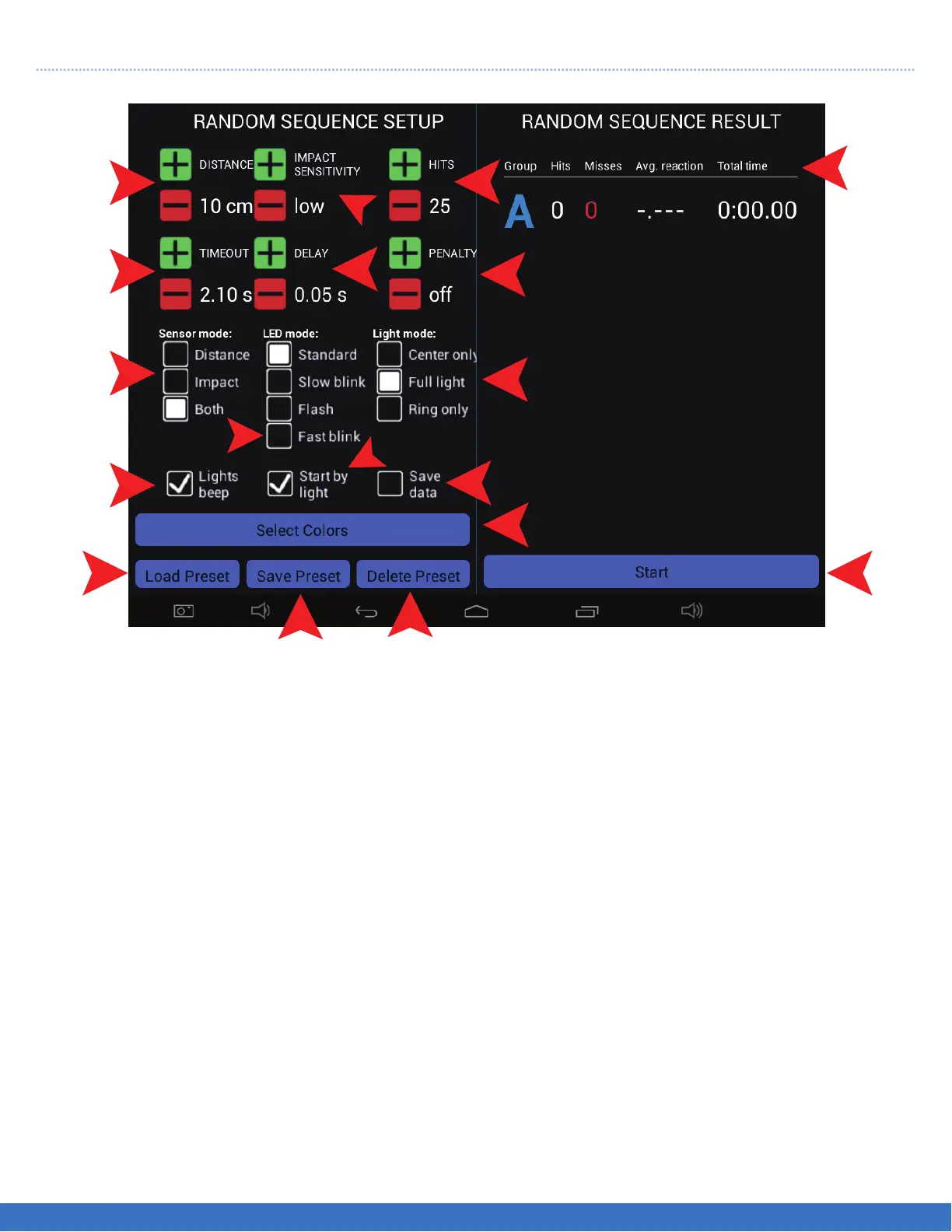 7. Select the number of hits/Lights required in the routine. The example shows 25.Use the +/- buttons to