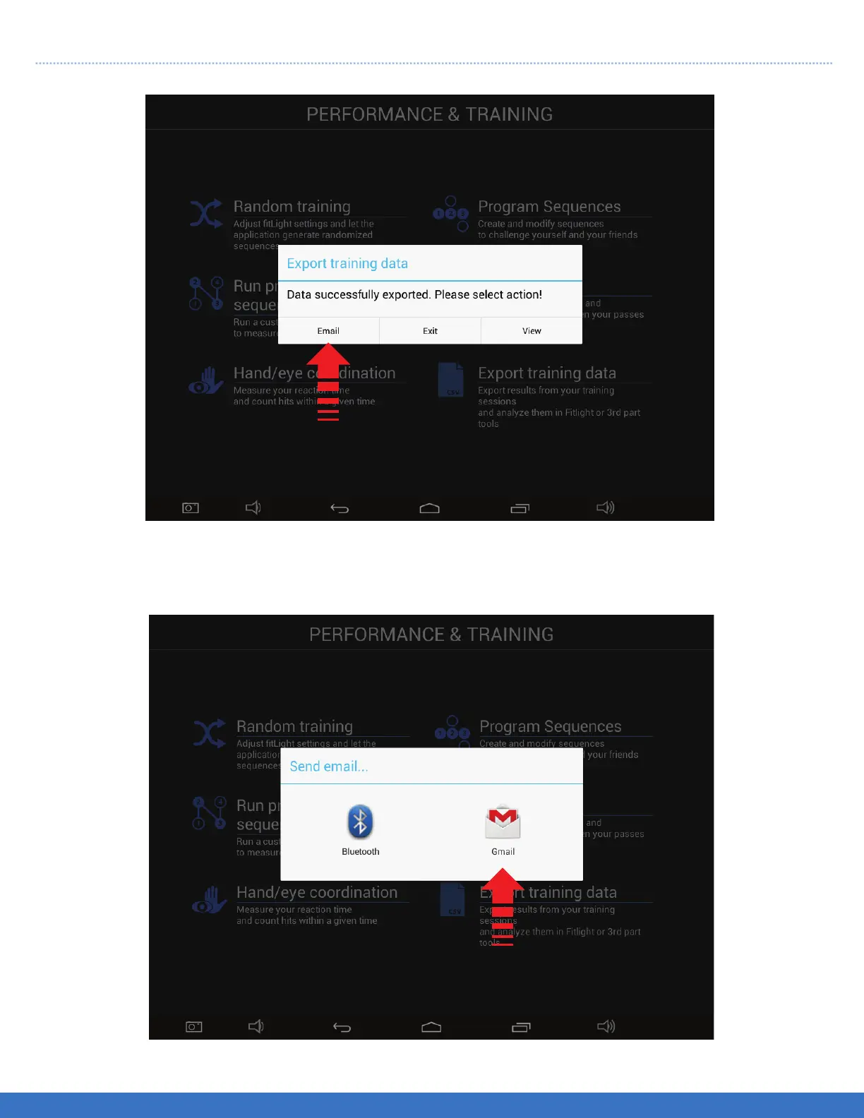 Email: Enables the export of the data to the FITLIGHT™ Utlity
