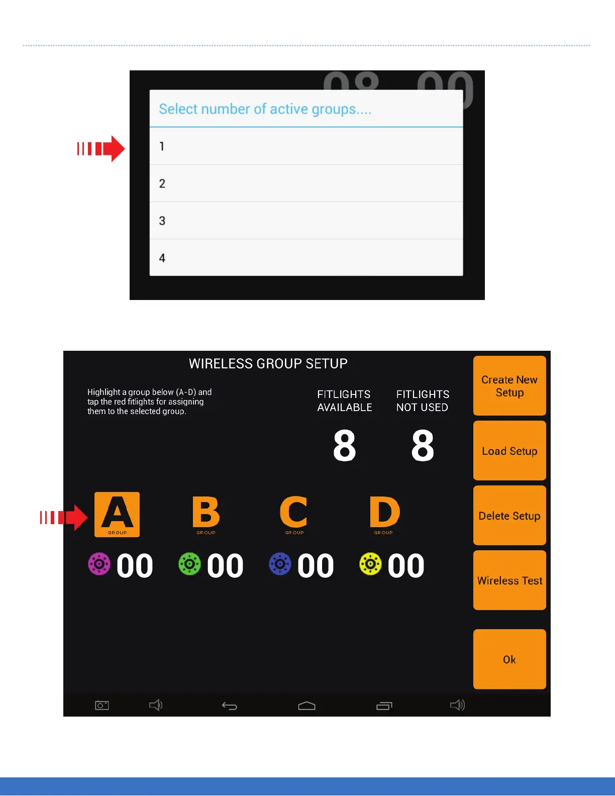 Select the number of groups. In this example, shows 1 group of 8 Lights