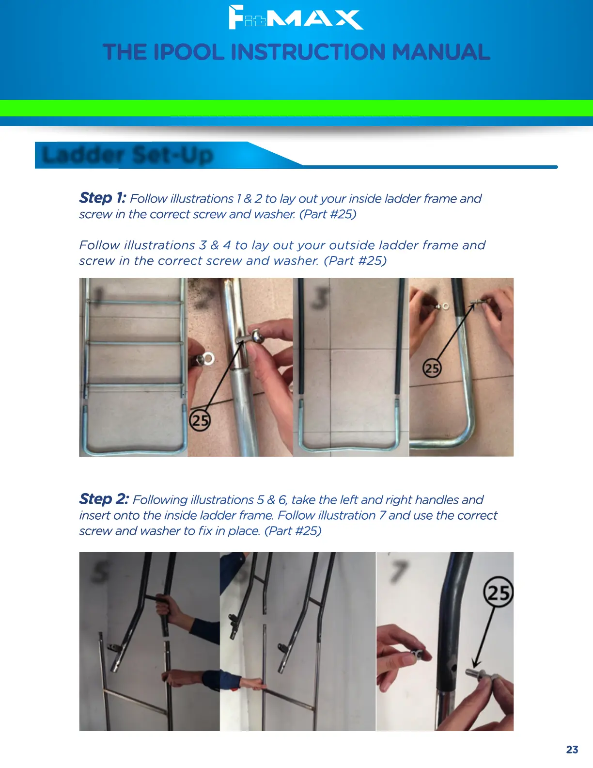 insert onto the inside ladder frame. Follow illustration 7 and use the correct