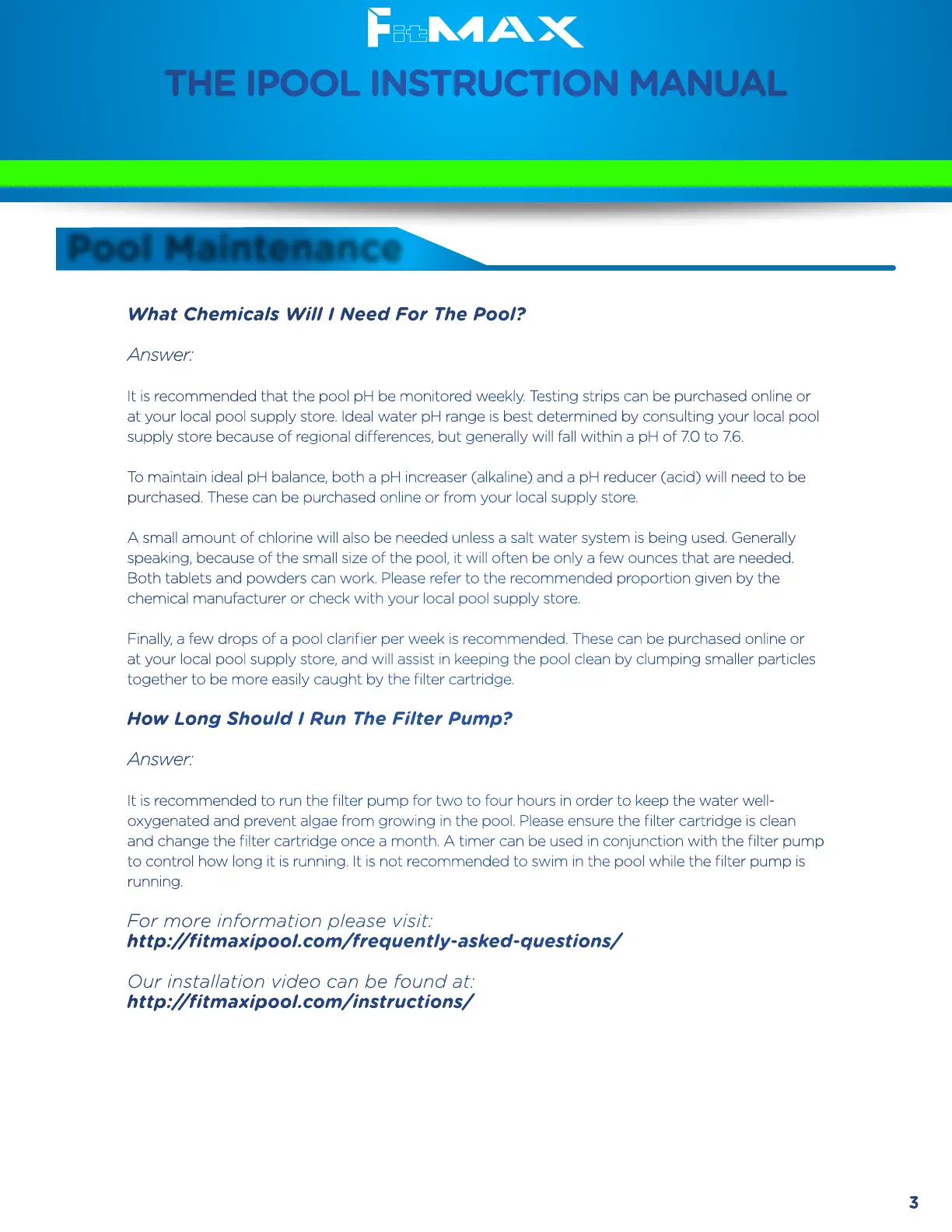 It is recommended that the pool pH be monitored weekly. Testing strips can be purchased online or