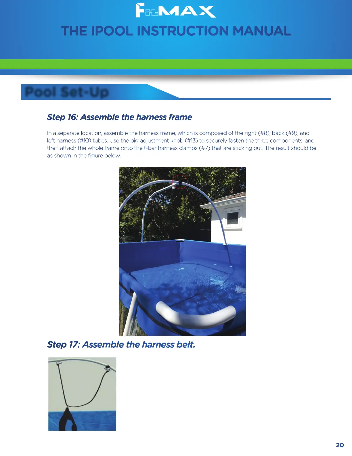 left harness (#10) tubes. Use the big adjustment knob (#13) to securely fasten the three components, and
