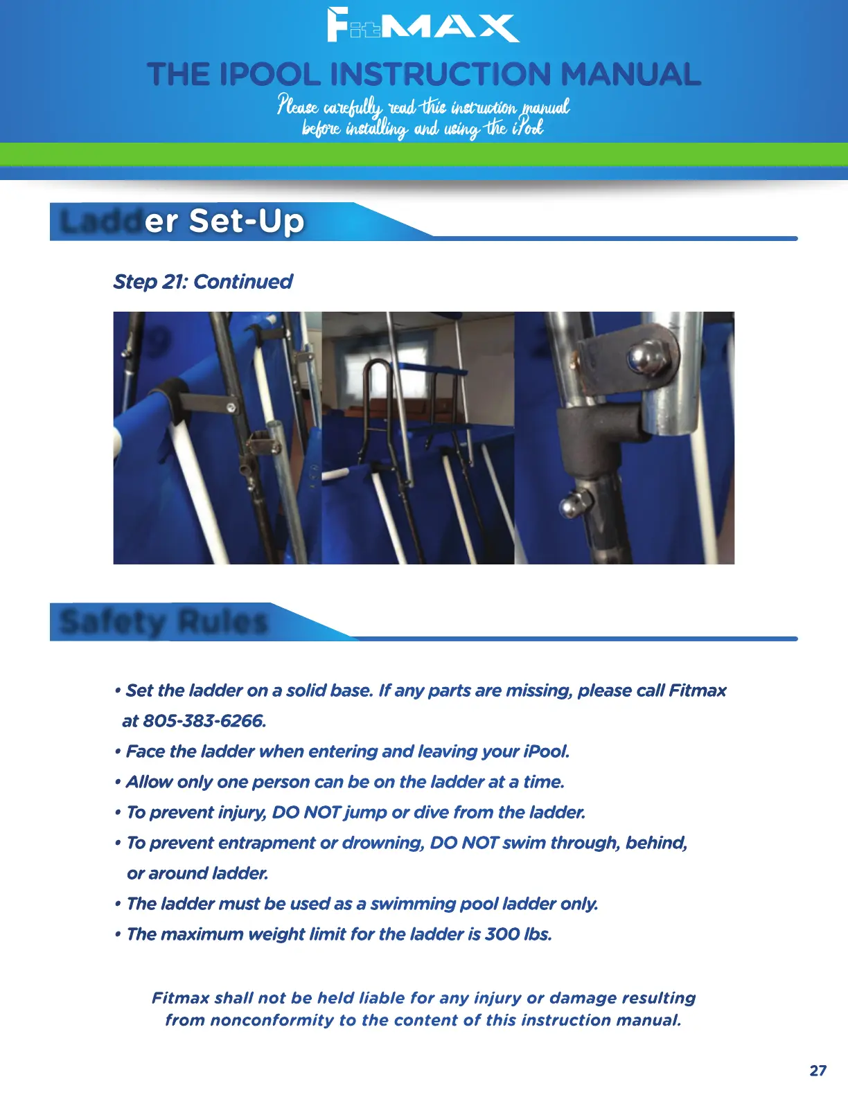 • Set the ladder on a solid base. If any parts are missing, please call Fitmax