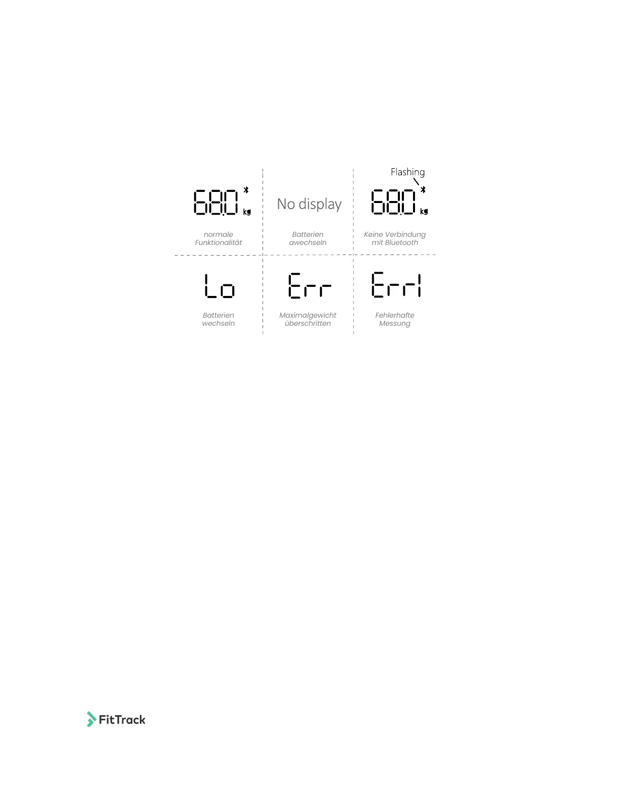 FitTrack Dara zeigt „Err1“ aus zwei Gründen an: