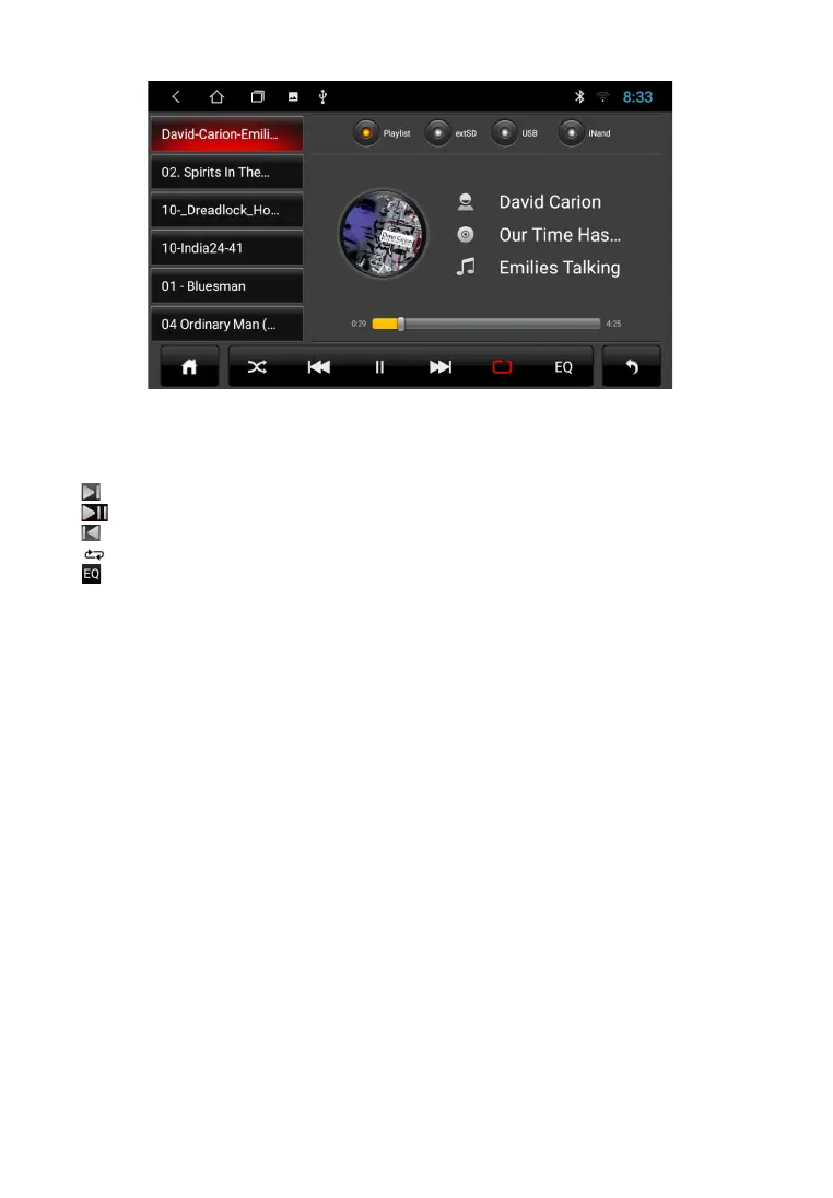 To play video from external media connected to the AV input, press the "AUX" icon from