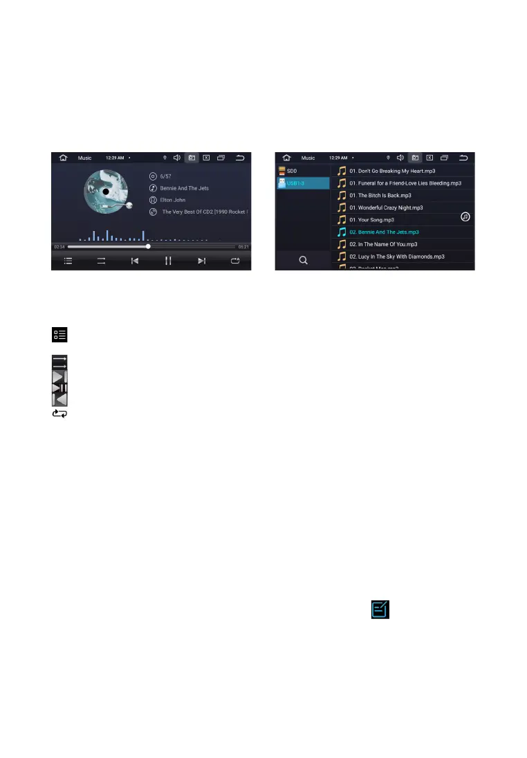 To listen to music, click on the "Music" icon on the main menu. Track playback possible both from the