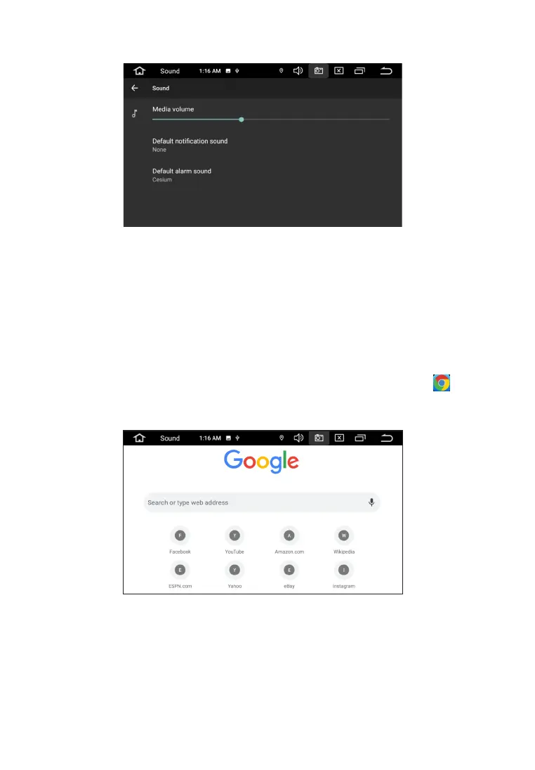 By default, the device has the Chrome browser installed. To launch the browser, tap icon