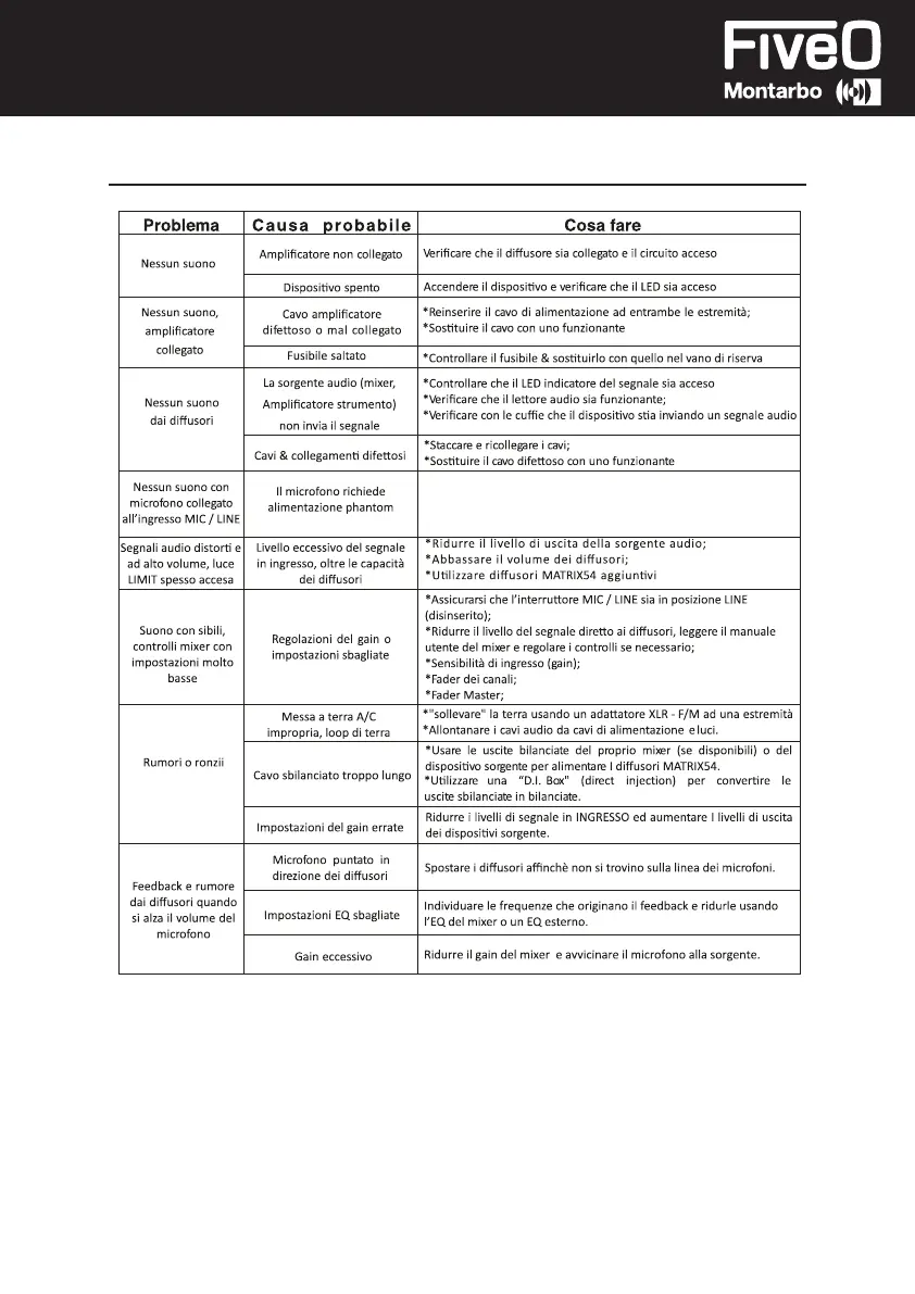FiveO MATRIX54 - Troubleshooting Common Problems; Issue Diagnosis and Resolution