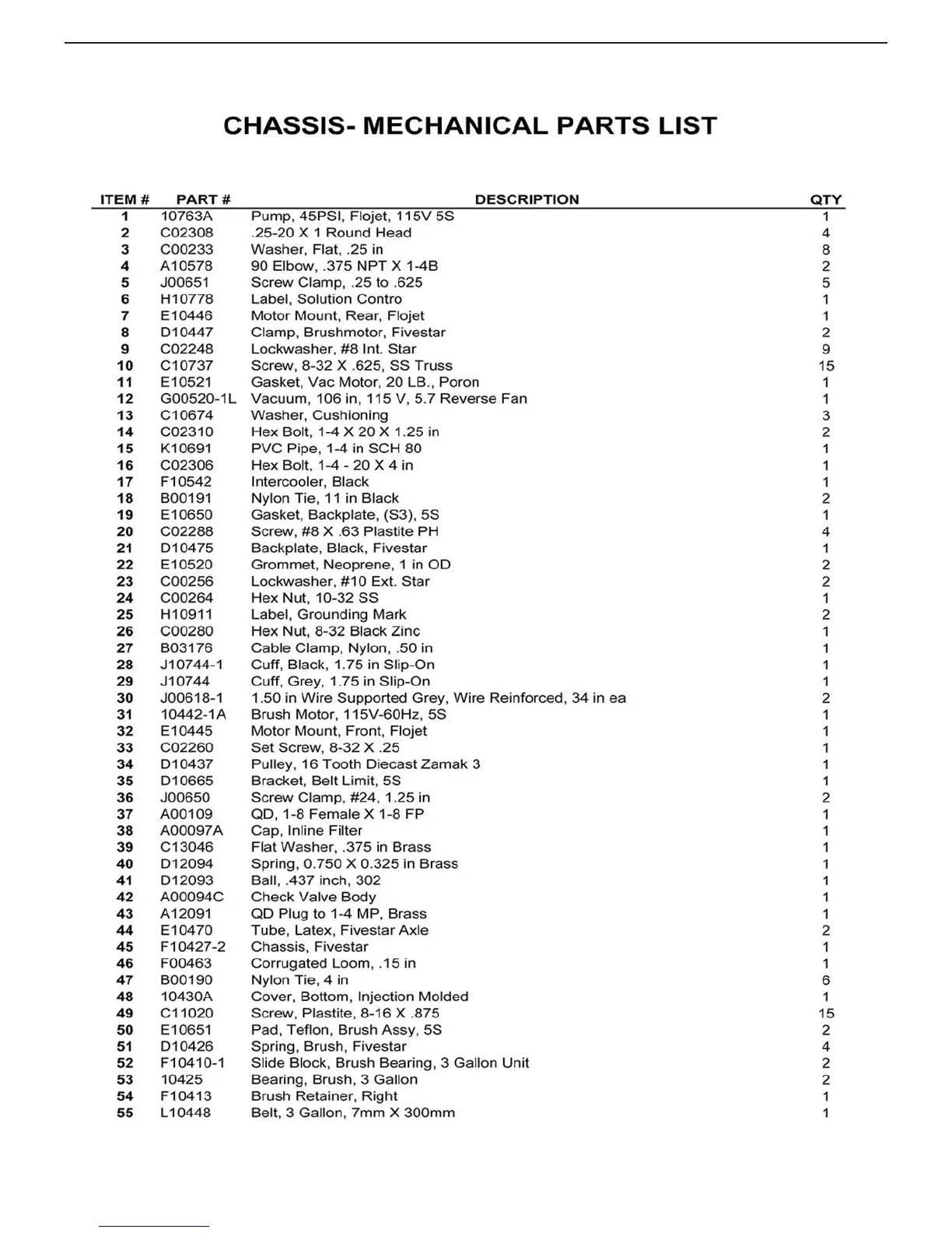 FiveStar 401TR - 411 TR Chassis Mechanical Parts List