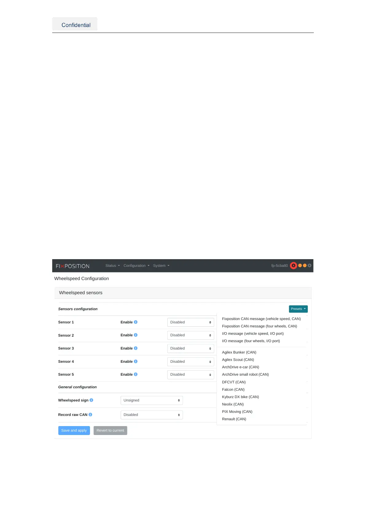 The Fixposition CAN message can support wheelspeed measurements from one or four