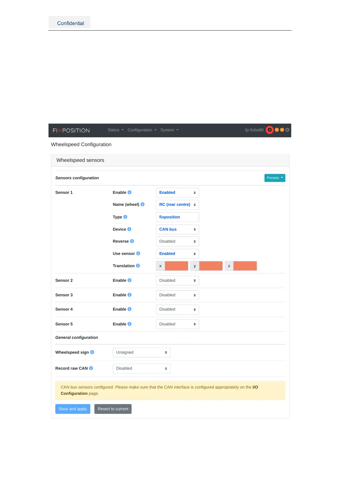 selected. For example, Figure 5.19 presents the configuration when the "Fixposition CAN