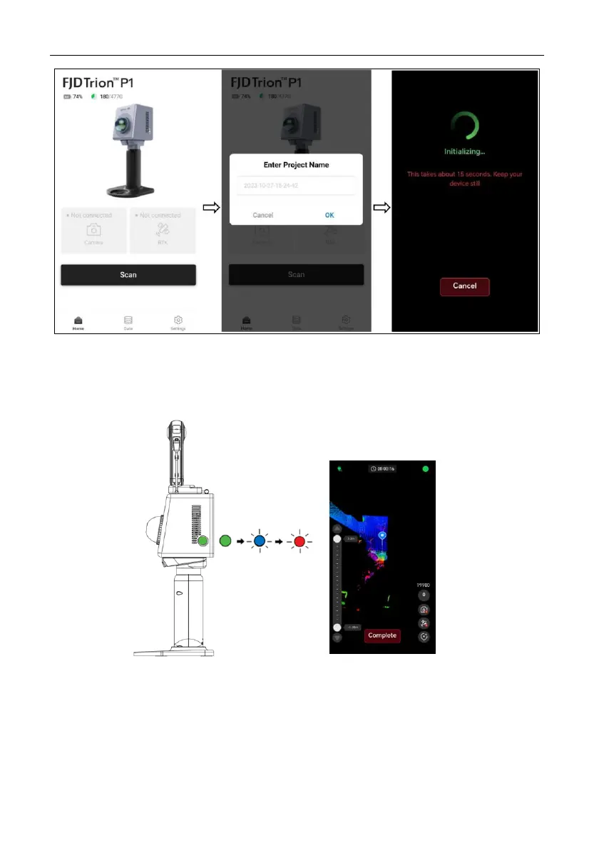 ready for scan, and you can start scanning and view the point cloud data in Trion Scan.