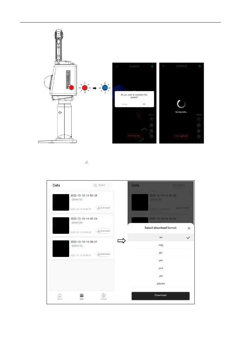 Tap Data at the bottom, tap Download on the required data, select the format on the