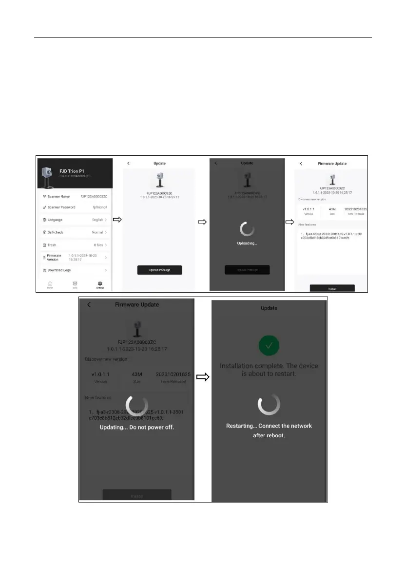 number, package size, and release time). Do not power off P1 during the update. When