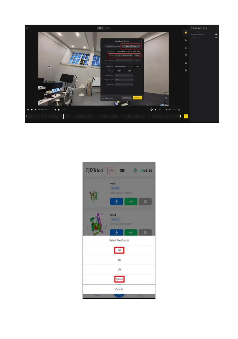 Open Trion Scan, tap the download button on a project file, and select the .fjslam