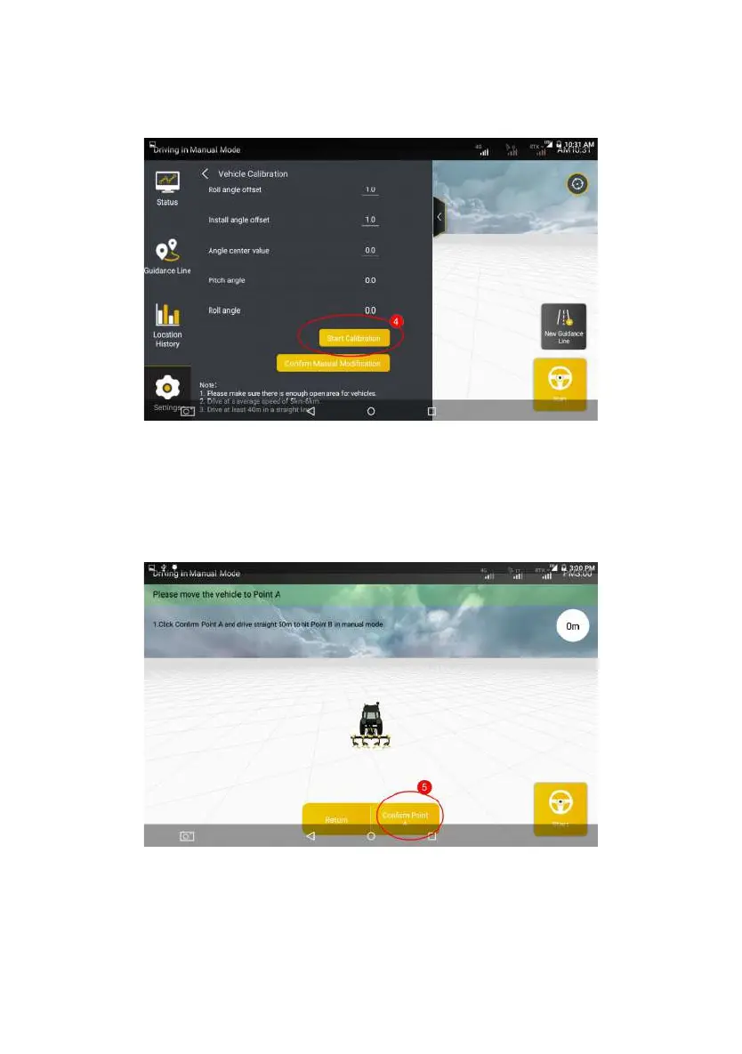 Move the agricultural vehicle to the starting point and tap Comfirm Point A on the
