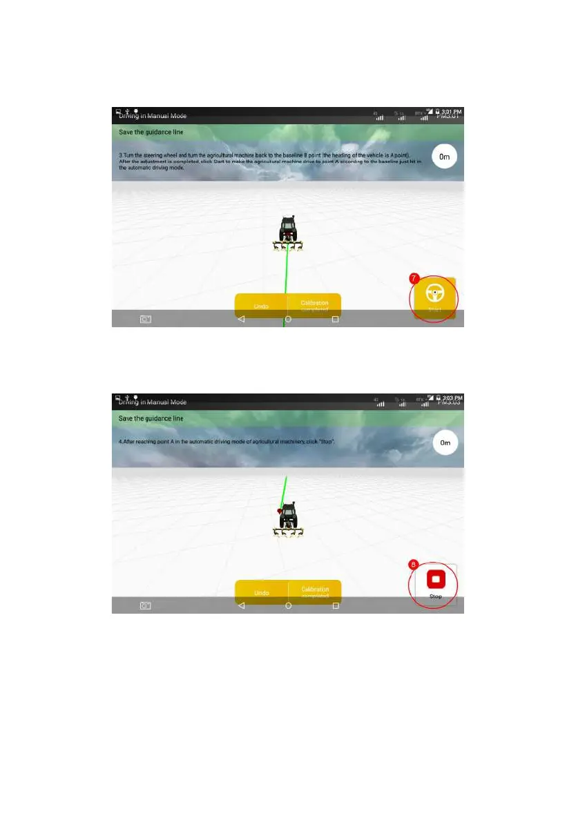 Step 7: tap Stop after the vehicle arrives at Point A in the autosteering