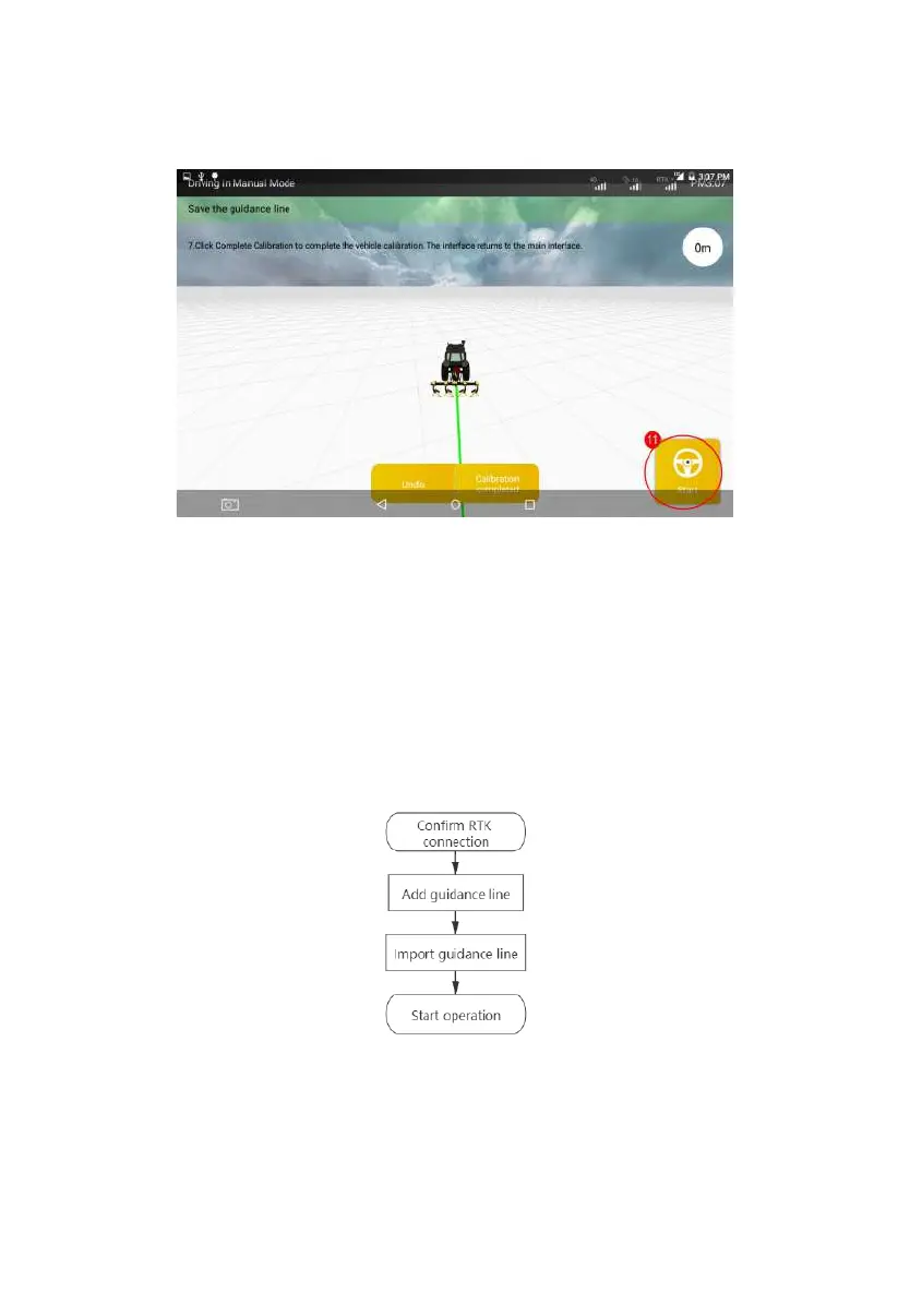 Confirm RTK connection → Add guidance line → Import guidance line →