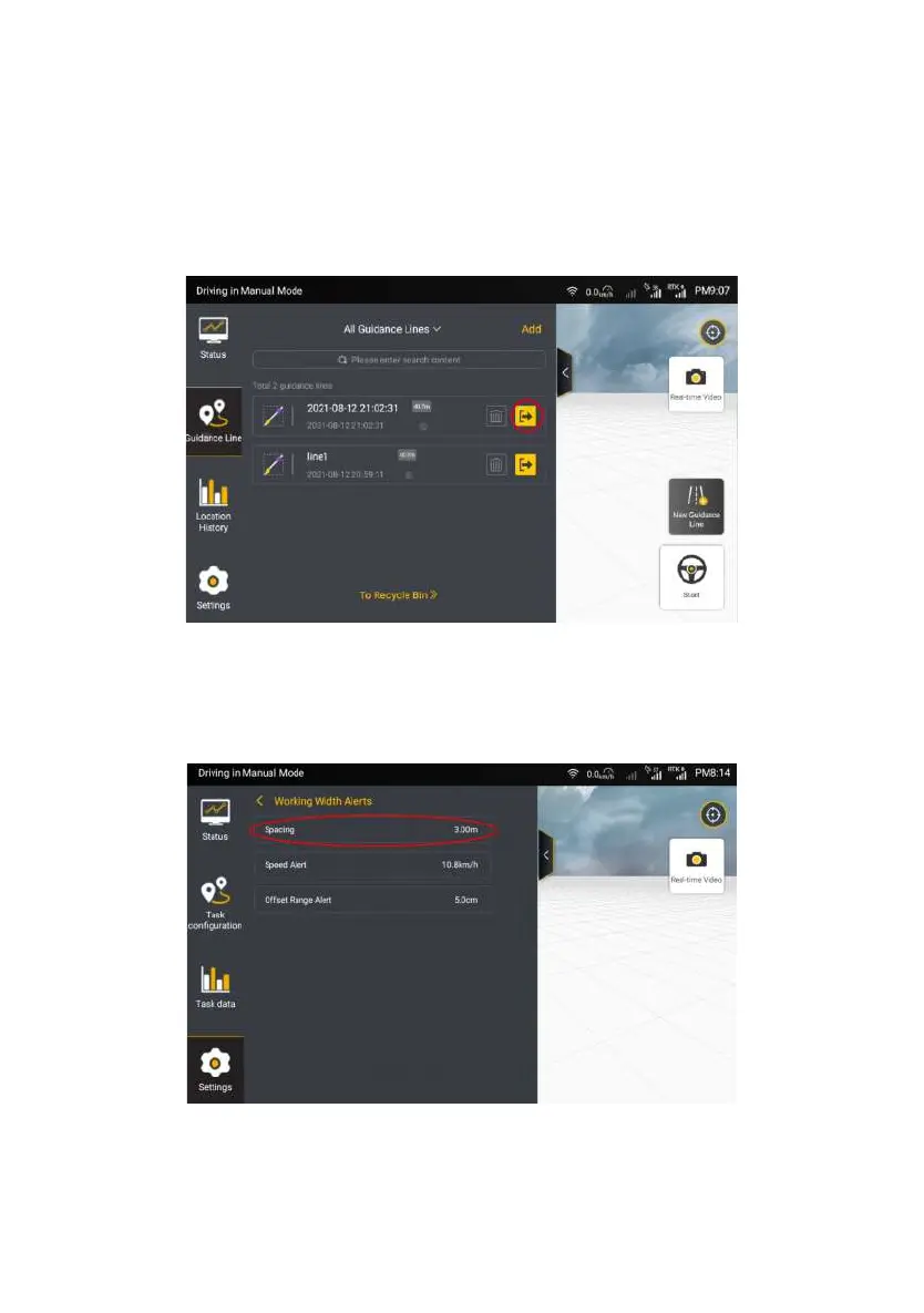 Settings -> Working width Alerts to set the working width for the preparatory