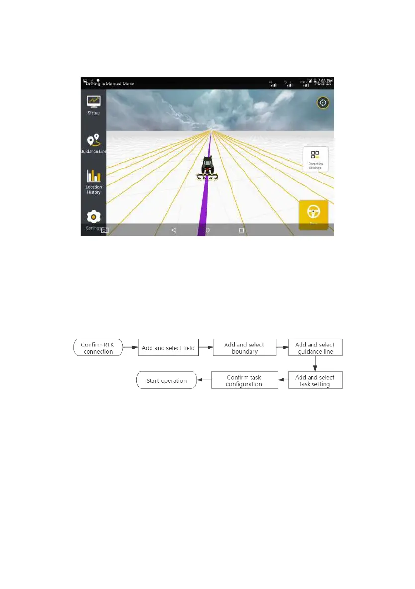 Confirm RTK connection → Add and select field → Add and select boundary