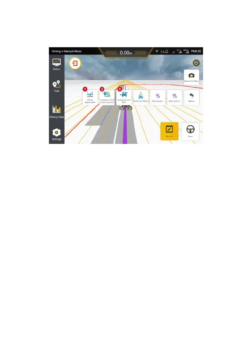 In the manual mode after starting the task, the user adjusts the guidance line