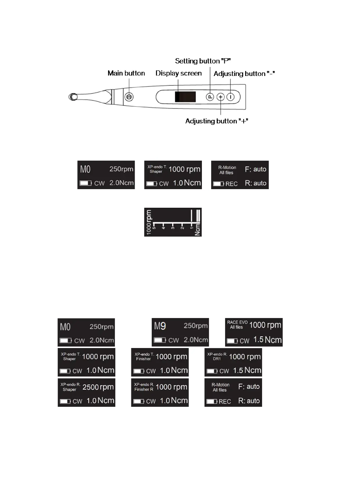 4. To power OFF the device, hold down the Setting button “P”, and press the Main button.