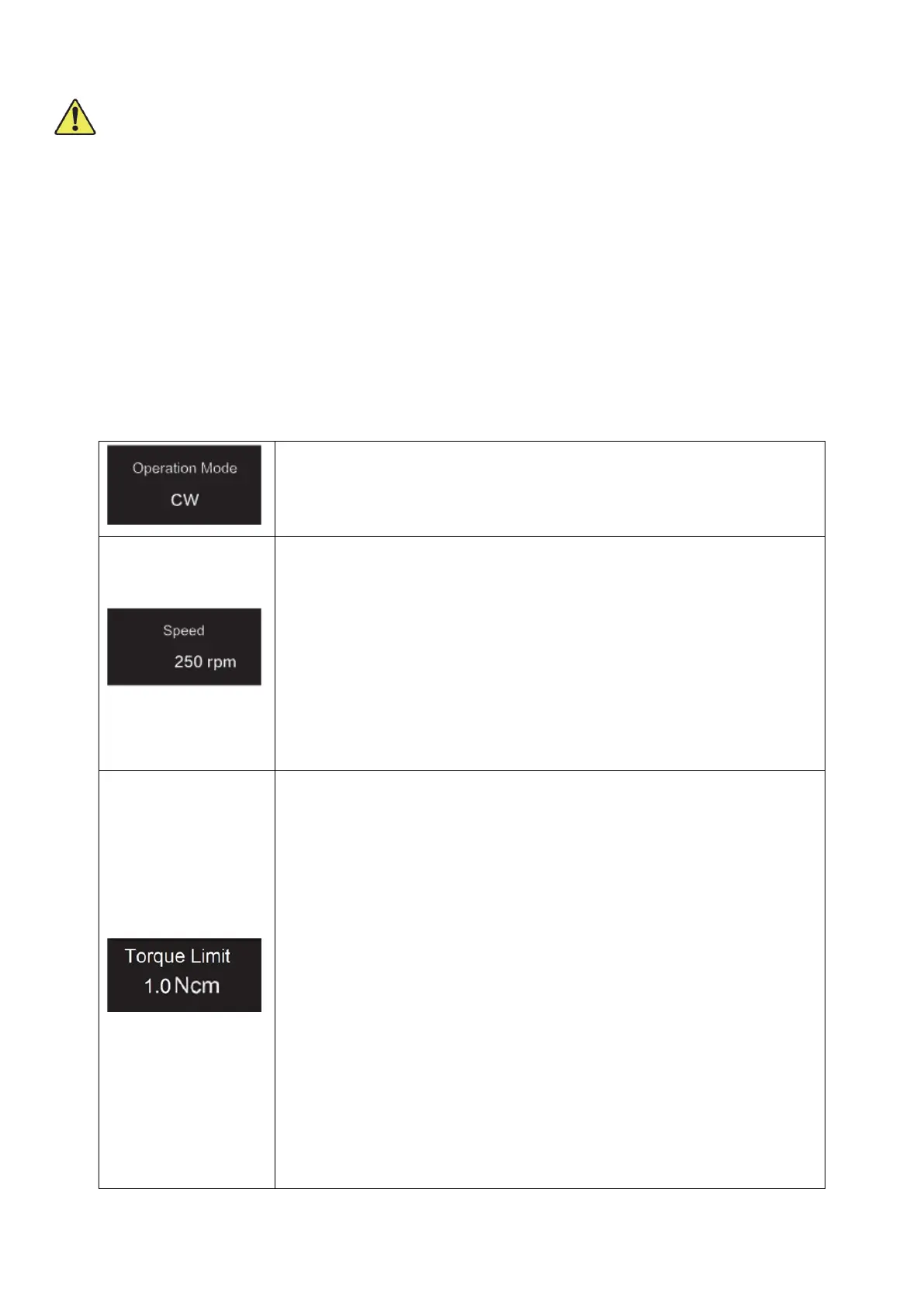 In CCW continuous rotation mode, the torque limit cannot be set.