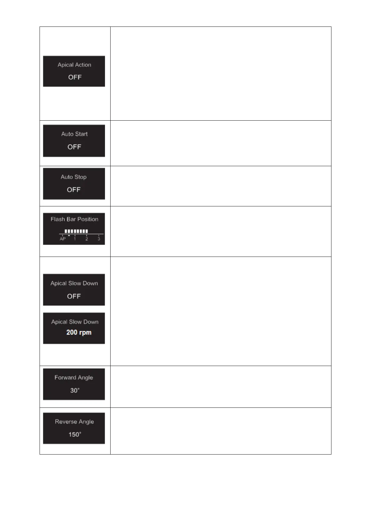 When the Apical Slow Down is activated, the motor slows down to a set final speed