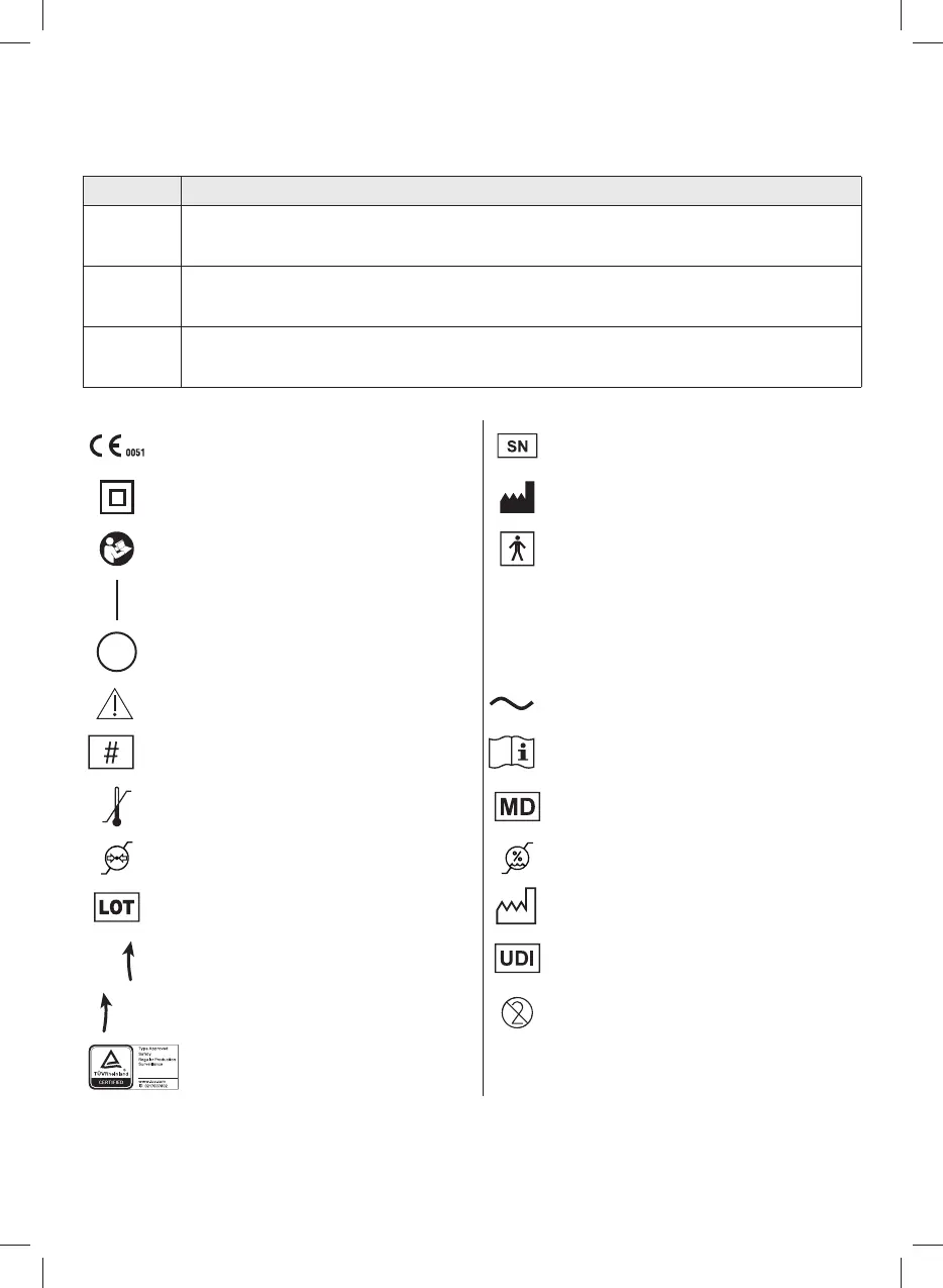 Avant l’utilisation: Attention, vérier le mode d’emploi Pièce appliquée de type BF