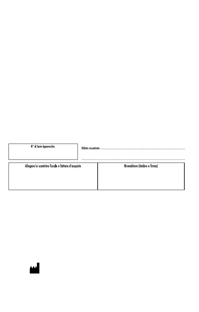 La GARANZIA è valida solo se l’apparecchio, in caso di guasto, verrà reso adeguatamente pulito e igienizzato
